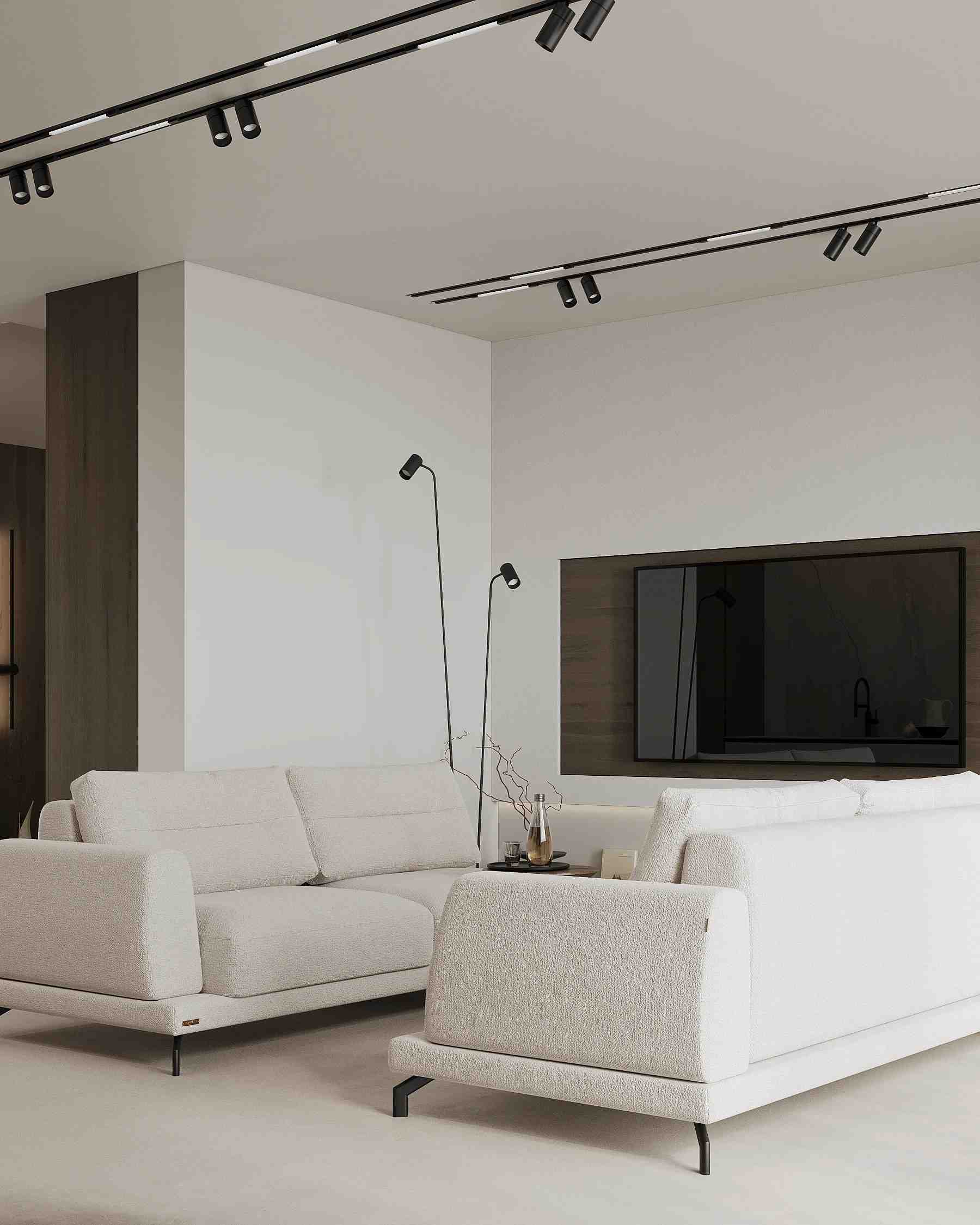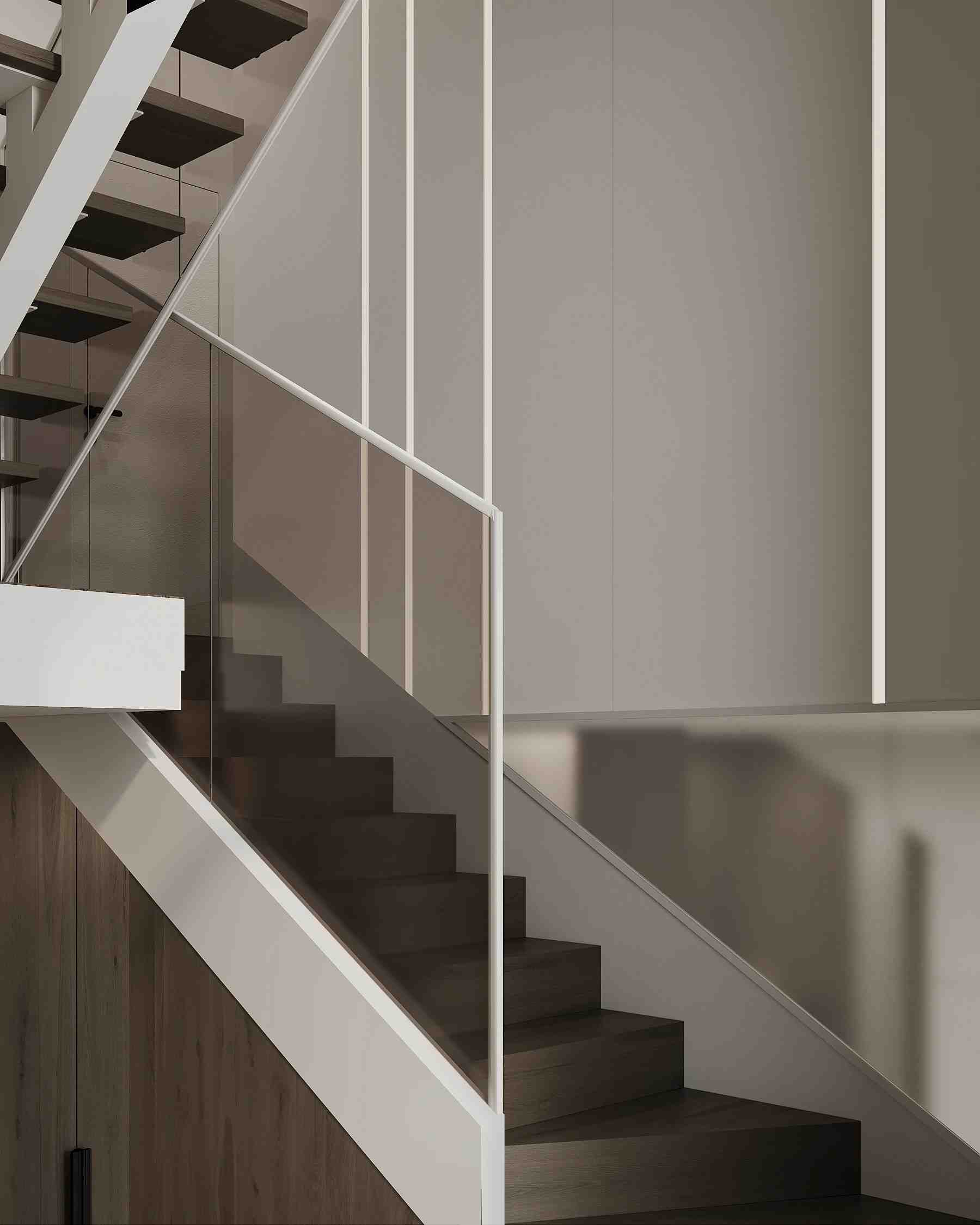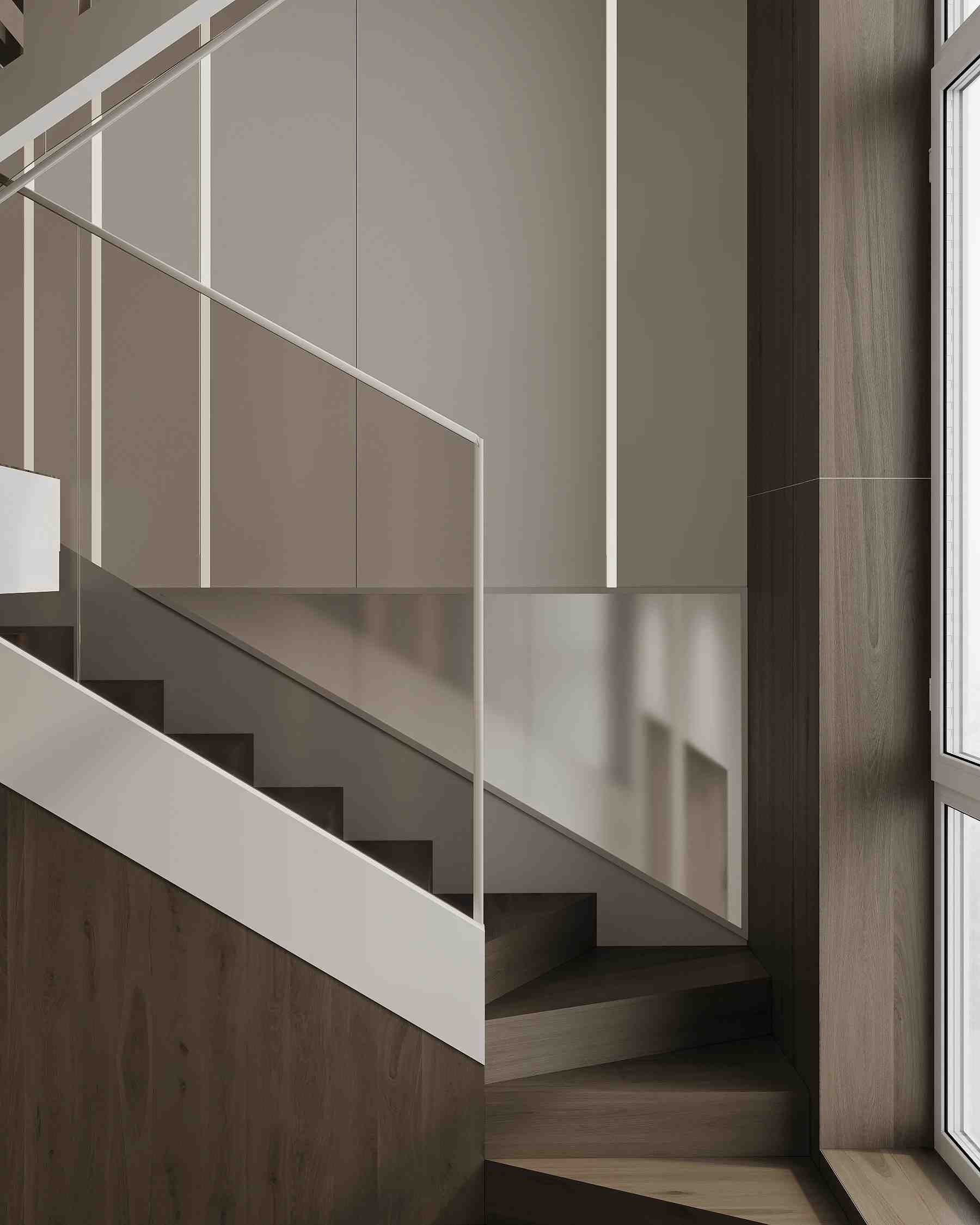 The design concept is rooted in contemporary minimalism, creating a serene and inviting atmosphere. The color palette is intentionally soft and neutral, with a focus on warm beiges, gentle grays, and natural wood finishes to create a feeling of comfort and tranquility. This approach ensures that while the design is sleek and modern, the home remains a welcoming retreat.