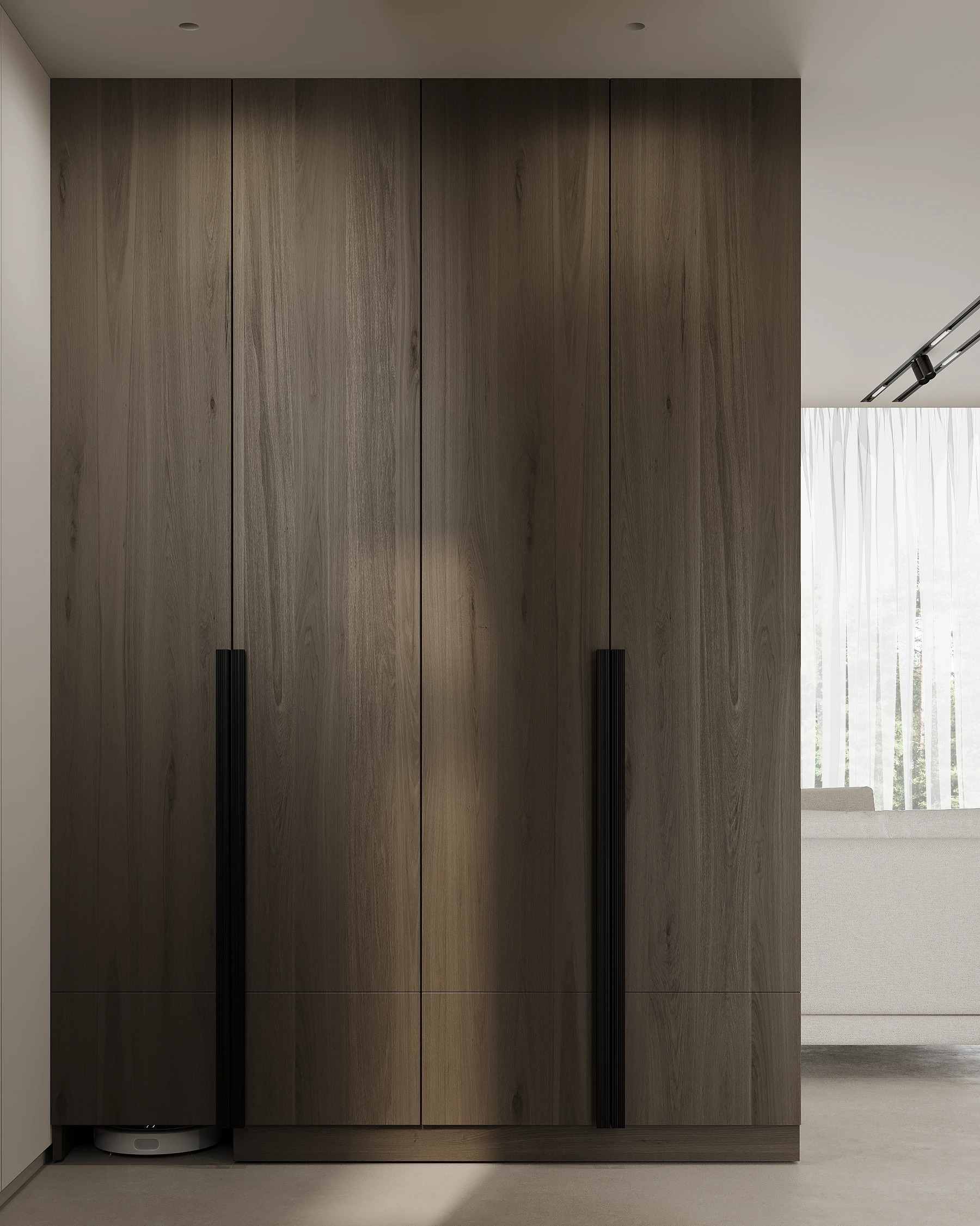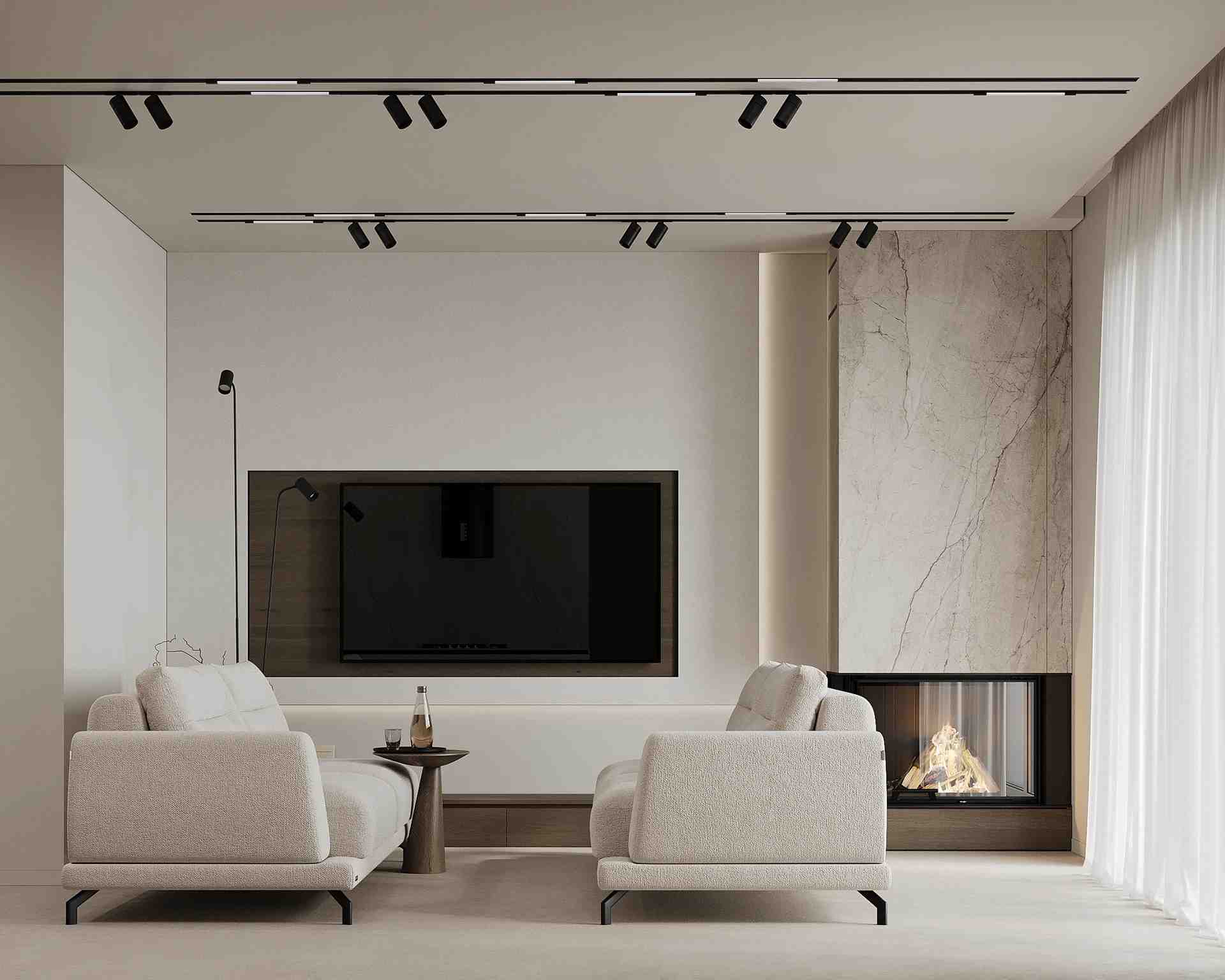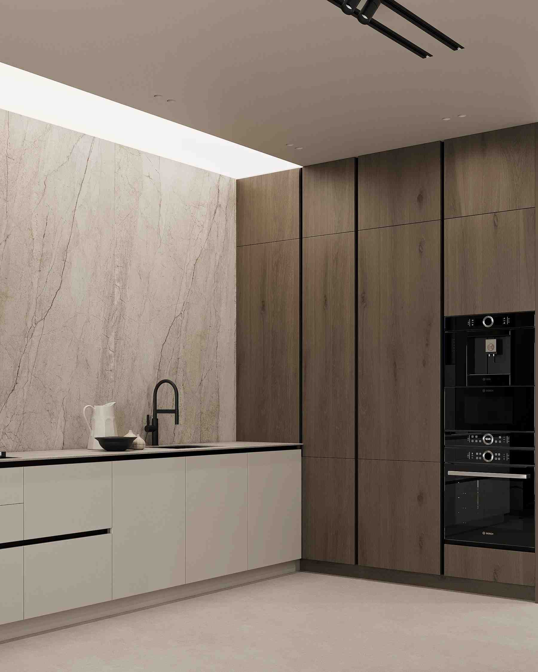 The design concept is rooted in contemporary minimalism, creating a serene and inviting atmosphere. The color palette is intentionally soft and neutral, with a focus on warm beiges, gentle grays, and natural wood finishes to create a feeling of comfort and tranquility. This approach ensures that while the design is sleek and modern, the home remains a welcoming retreat.